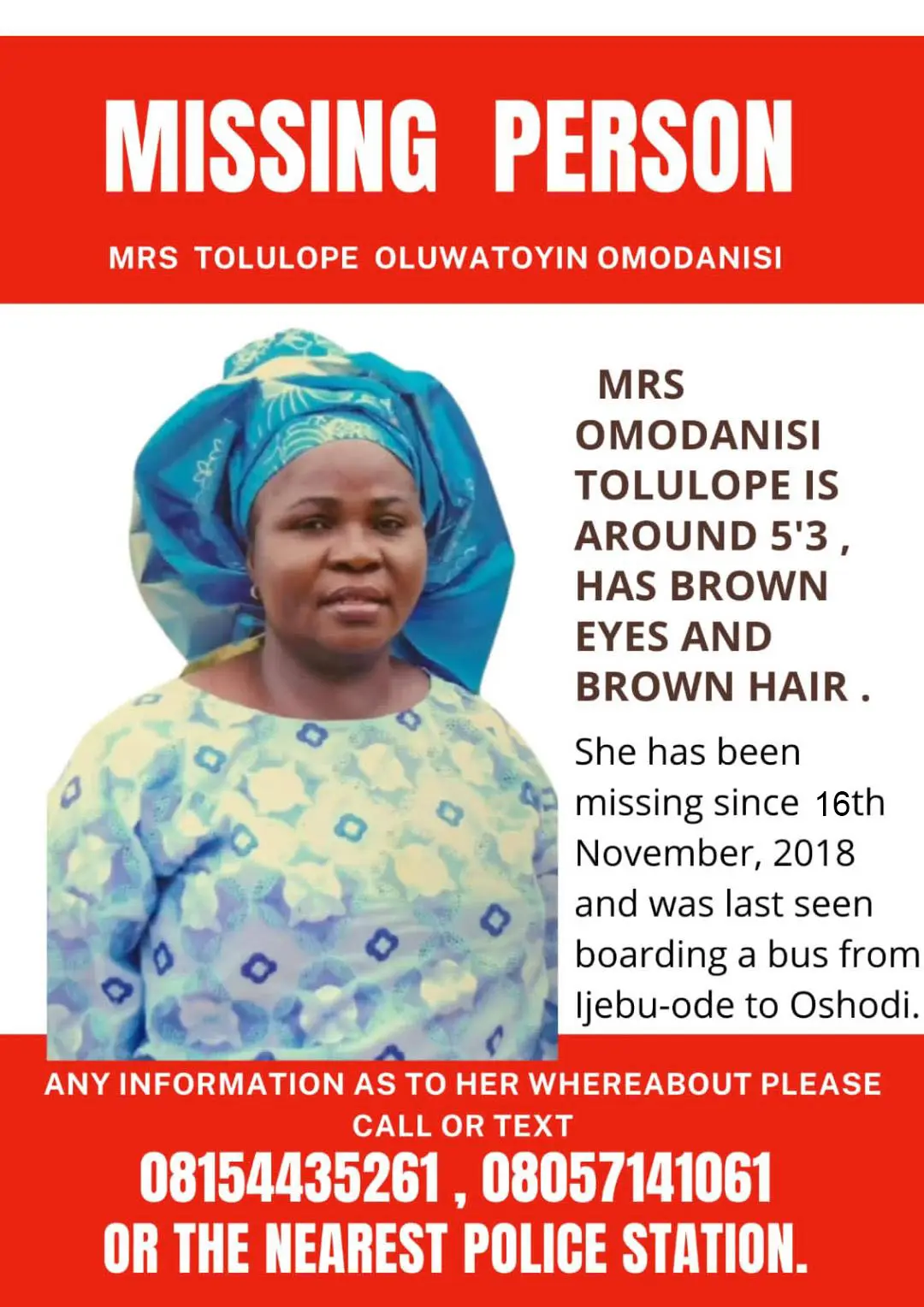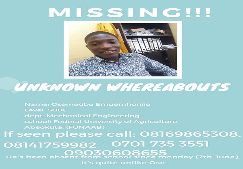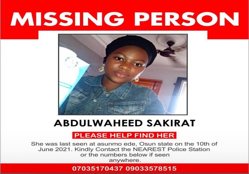 If you have any useful information, please contact 08060237891, 08081932888 or nearest Police Station
